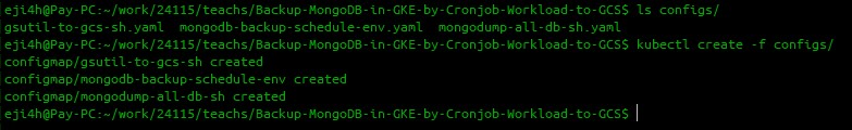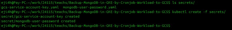 เป็น ConfigMap ที่จะเอาไปทำการสร้างเป็น File Bash script ในการนำ Backup file ทั้ง BACKUPS_FOLDER ไปเก็บไว้ที่ GCS Bucket ซึ่งก่อนที่จะนำไฟล์ไปเก็บไว้ที่ GCS ได้ จะต้องทำการ Authentication กับ Service account key ที่ Download มา และจะตั้งชื่อตาม ปีเดือนวันที่ทำการ Backup ไว้