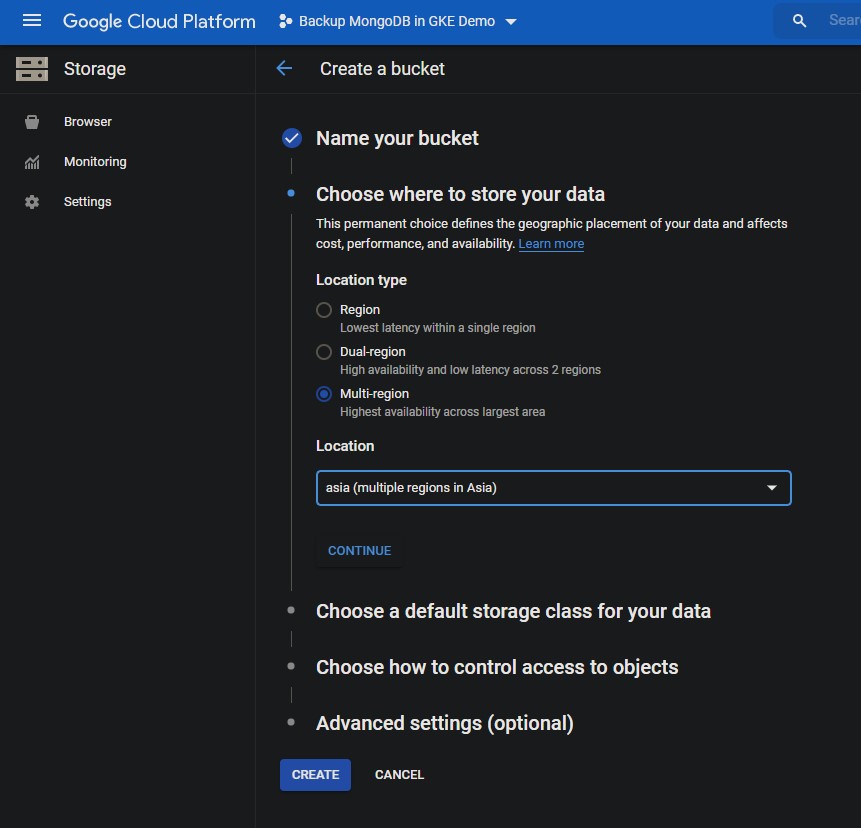 ต่อมาจะทำการสร้าง Google Cloud Storage Bucket ใหม่